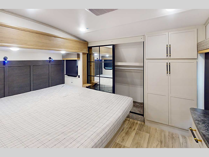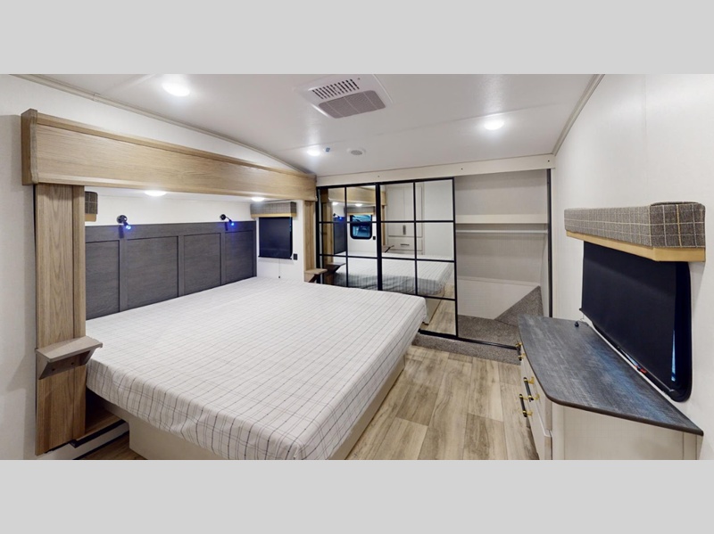 There are a variety of floorplans to choose from, including Platinum Series and Half-Ton fifth wheels, plus cozy travel trailers. Every model comes with a full ducted dual A/C to keep you cool on a hot summer day, large panoramic windows, and an arched interior ceiling. The vacuum bonded walls and walkable TPO reflective roof are ultra durable, and the heated and enclosed underbelly will help extend your camping season!